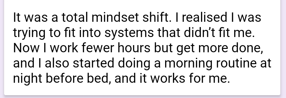 ✅ Accommodate your natural flow, instead of forcing unrealistic routines.