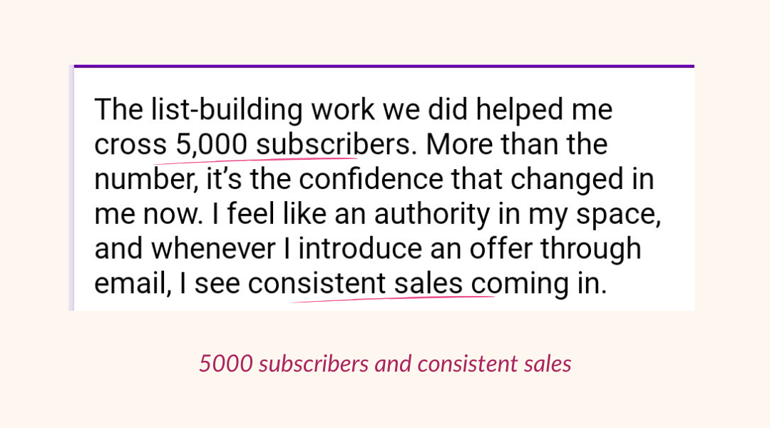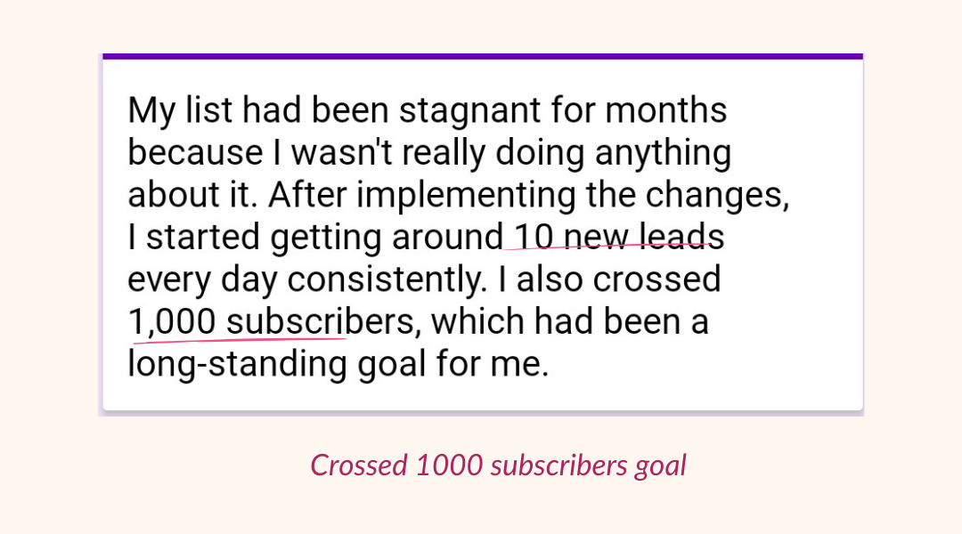My list growth has improved significantly, and I’ve also seen a positive impact on my sales. The exposure and guidance I received from Asmita have made a real difference.