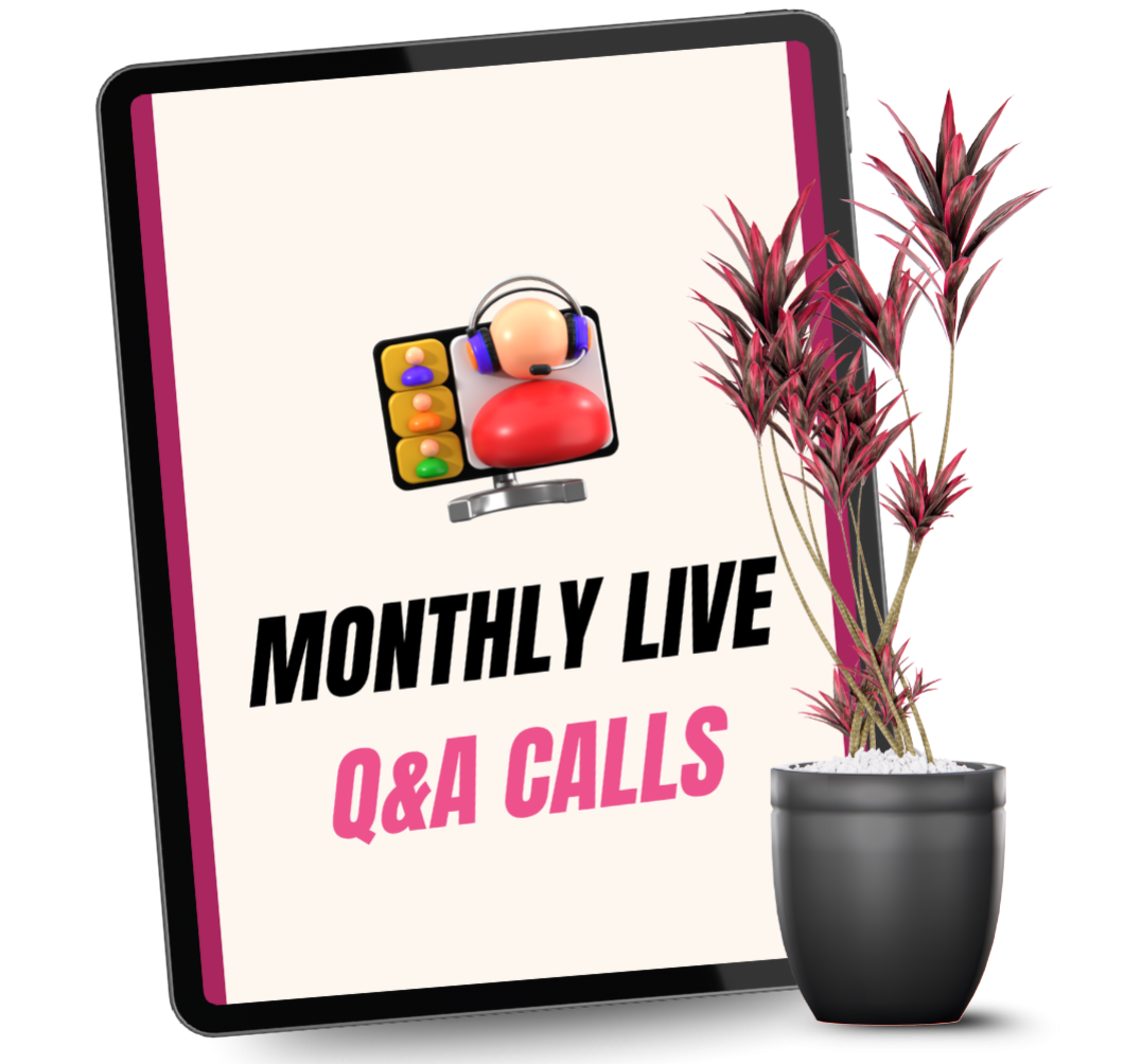 You’ll have access to monthly live Q&A calls for 12 months, focused on implementation and clarity.