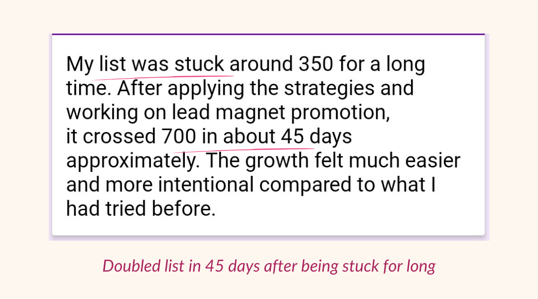 Asmita is the first person who brought real clarity to my business and list building. I felt stuck and confused about where to start. The way she explains things made everything feel clear and manageable.