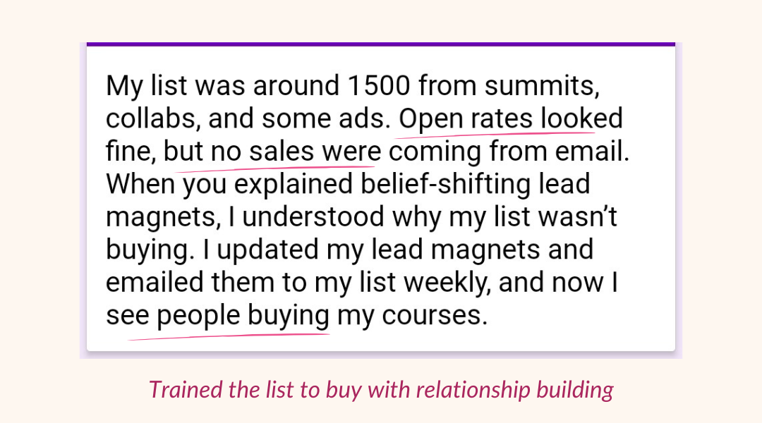 You focus on connection and nurture so your email list builds trust, readiness, and long-term value, not just numbers.