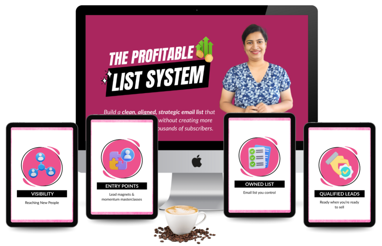 Profitable List System brings together everything that actually matters for sustainable list growth...alignment, entry points, visibility, momentum, and nurture, into one system you can return to and refine over time.