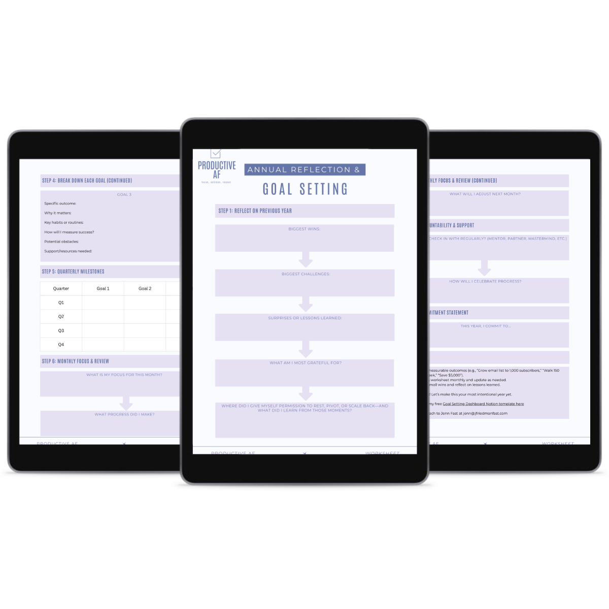 Stop Setting Goals That Don't Stick. Start Building a Year That Actually Feels Good. 8-step reflection & goal-setting framework designed for humans who want intentional progress, not perfectionism. Unlike generic worksheets, this one starts with reflection, focuses on feeling + outcome, includes obstacle planning, and honors rest alongside progress.