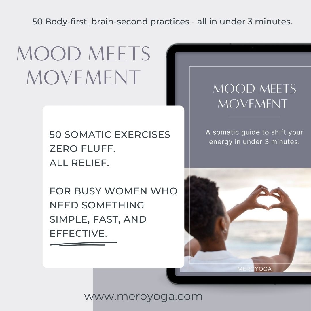 Your go-to somatic guide for shifting your nervous system in under 3 minutes. Inside, you’ll find 50 body-based practices to help you move through 10 different emotional states. Check in with how you feel, flip to the matching emotional state, and choose one of five grounding, energizing, or calming practices designed to meet you where you are. Perfect for busy women who need something simple, fast, and effective.