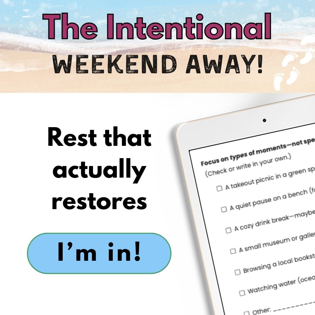 The Intentional Weekend Away is a free interactive workbook that helps you plan short, restorative getaways, without over-scheduling, guilt, or burnout.