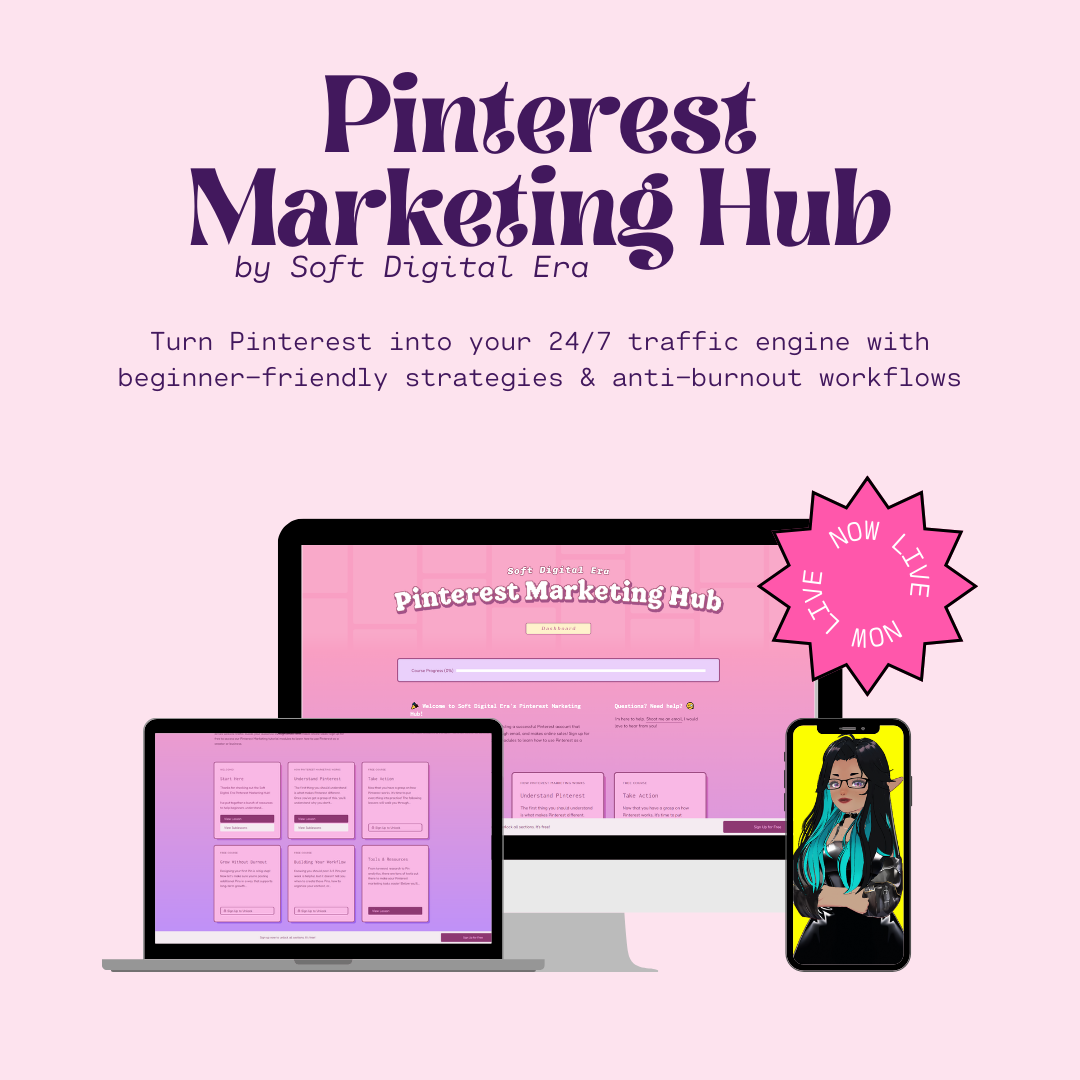 The Pinterest Marketing Hub by Soft Digital Era is a comprehensive beginner training covering getting started on Pinterest, optimization for visibility, and sustainable workflows.
