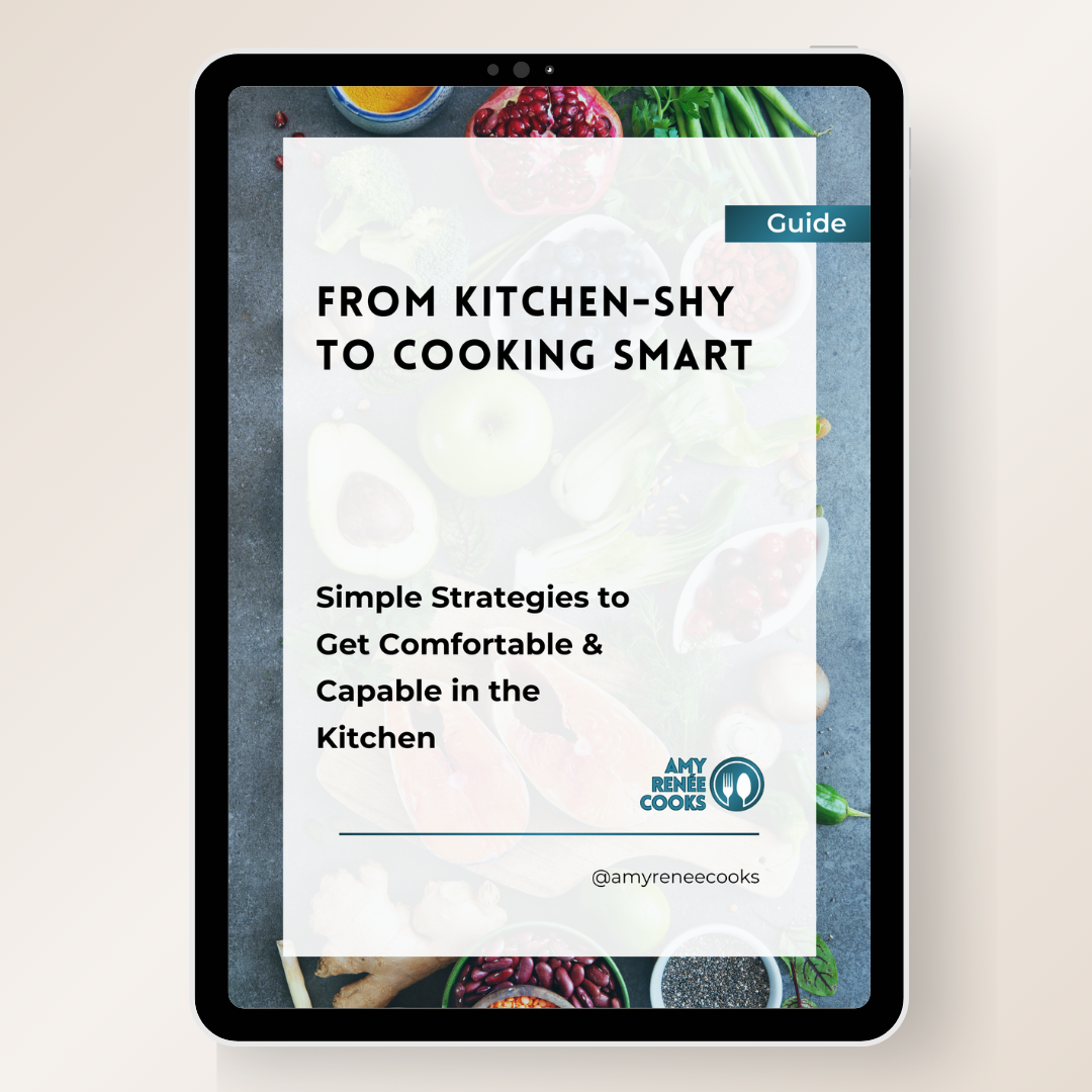 Kitchen-Shy to Cooking Smart teaches the five essential kitchen skills every midlife woman needs to feel capable in the kitchen. You’ll learn flavor basics, pantry confidence, and a real-life dinner system (the R.E.A.L.™ Plan) that works on tired nights — without complicated recipes. This is confidence you can feel