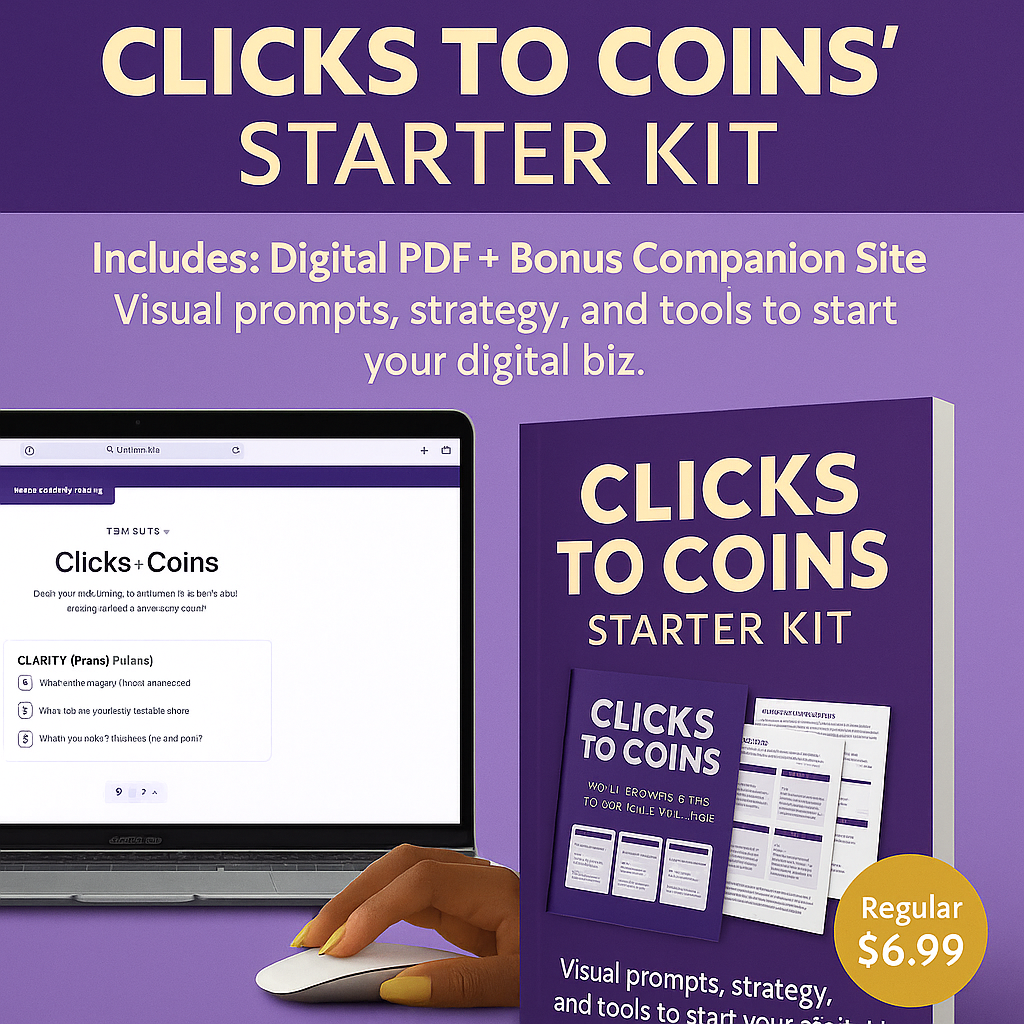 Get the 8-page Clicks2Coins mini guide + VIP access to the Gamma companion site with extra prompts and a visual walkthrough that shows you exactly how to turn your content into coins. Made for beginners, creatives, and content girlies who are ready to get paid.