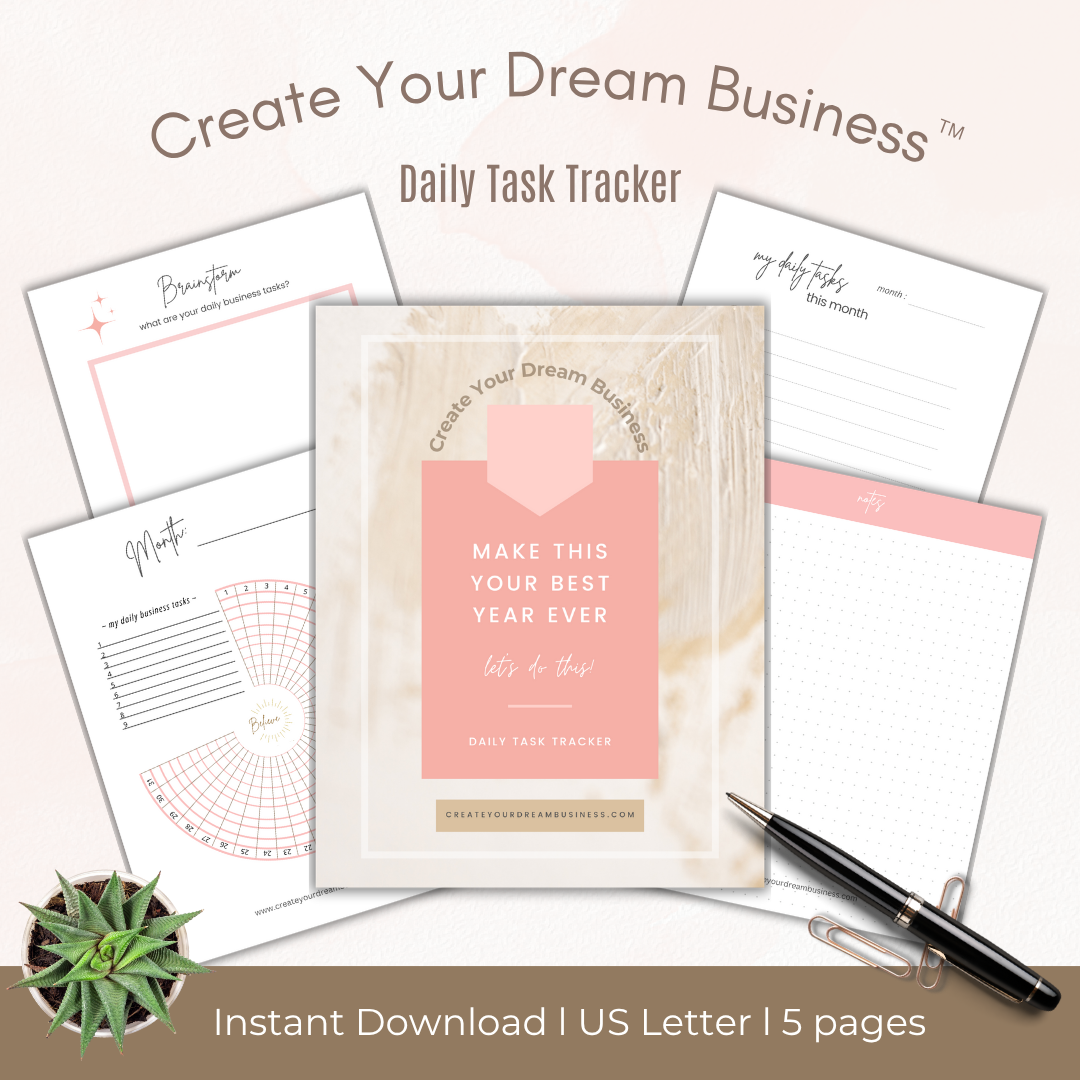 Use this monthly tracker to track up to 9 daily business tasks each month! Includes a brainstorm page, daily task list, and a notes page for monthly reflection.